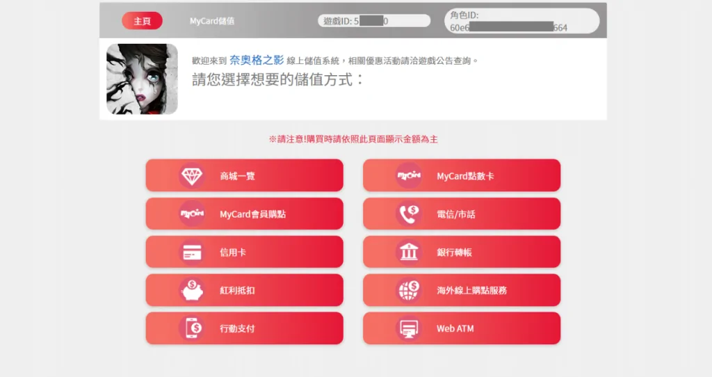 1.點擊《艾玩天地》官網首頁上方的【儲值專區】按鈕,並點擊《奈奧格之影》,或是前往《奈奧格之影》官網的【儲值購點】也可以進行儲值喔。