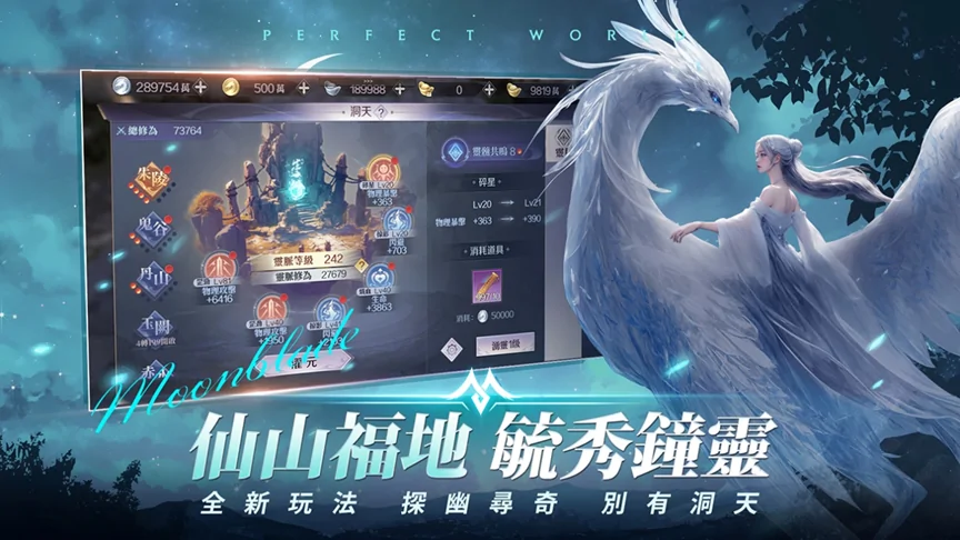 玩家角色達到2轉1級即可開啟「洞天」玩法。洞天由六條靈脈組成,可透過湧靈提升靈脈等級並獲得屬性加成;累積靈髓點至指定數量後,更能啟動強力的共鳴屬性。同時,玩家可利用濯元更換靈脈屬性類型,能依自身流派自由調整最合適的配置,越戰越勇。